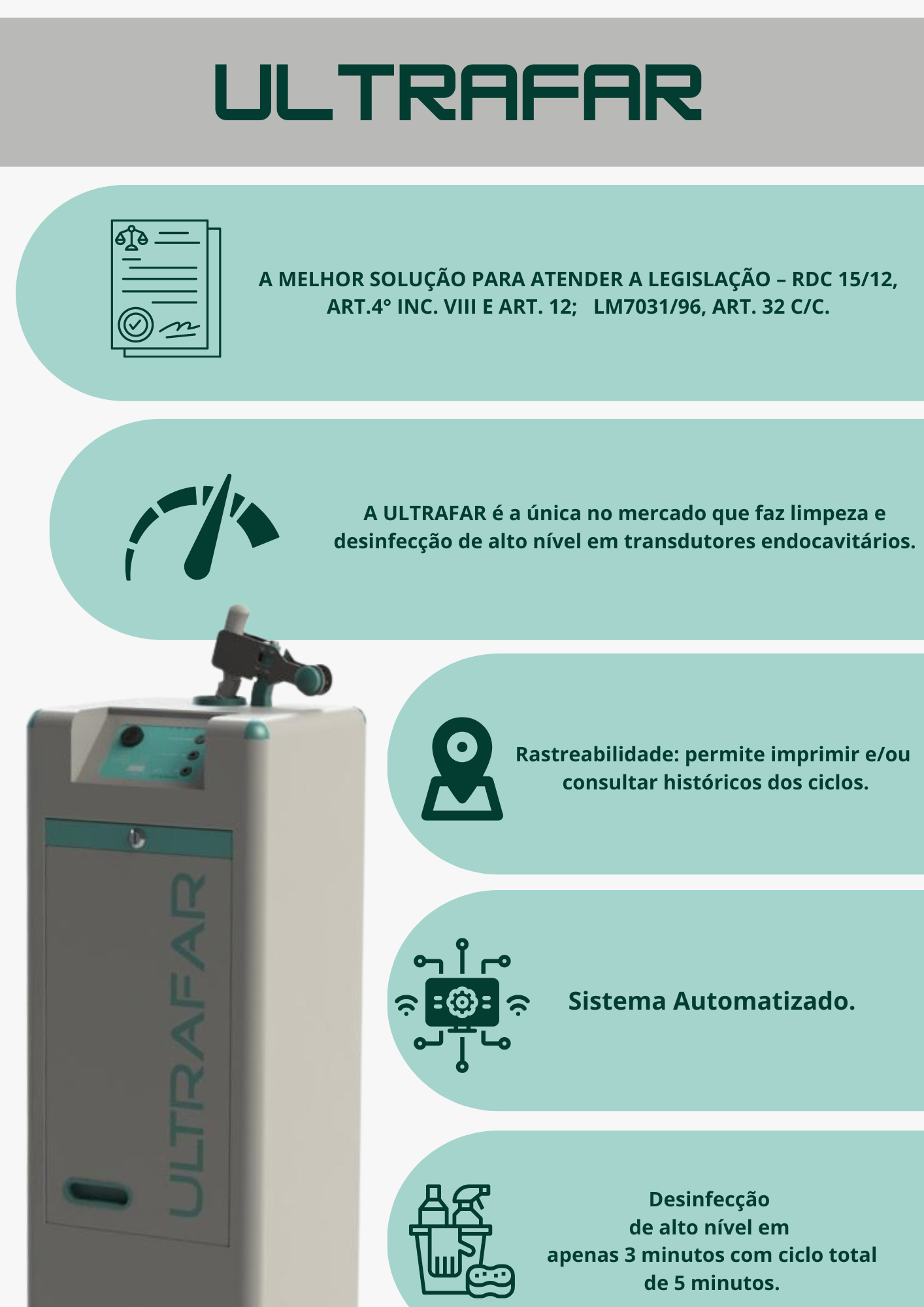 A ULTRAFAR é a única no mercado que faz limpeza e desinfecção de alto nível em transdutores endocavitários.